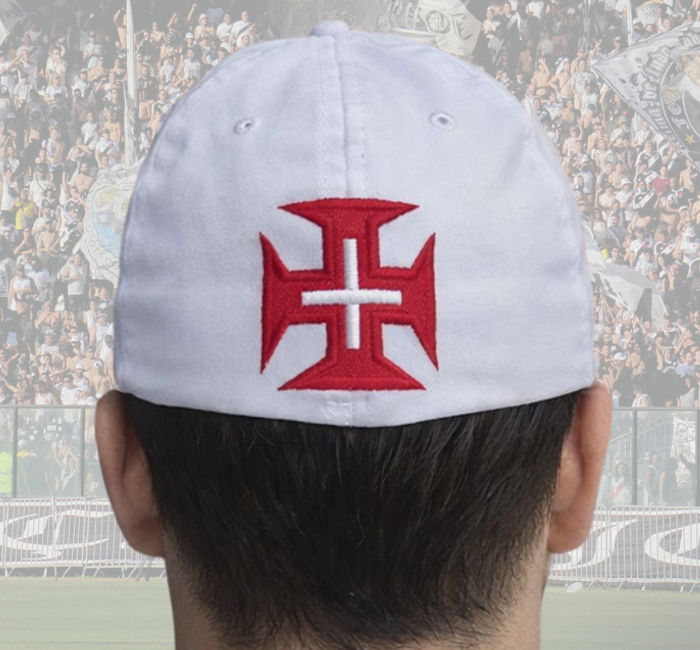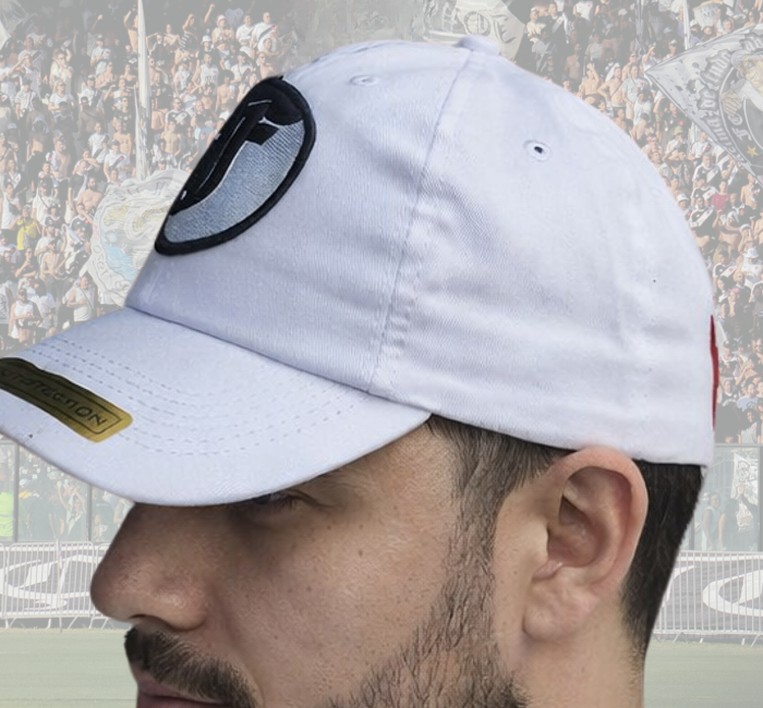 Boné Fechado Todo Branco Bola do F – FJV – Todo Bordado – Elástico Flex Ajustável.